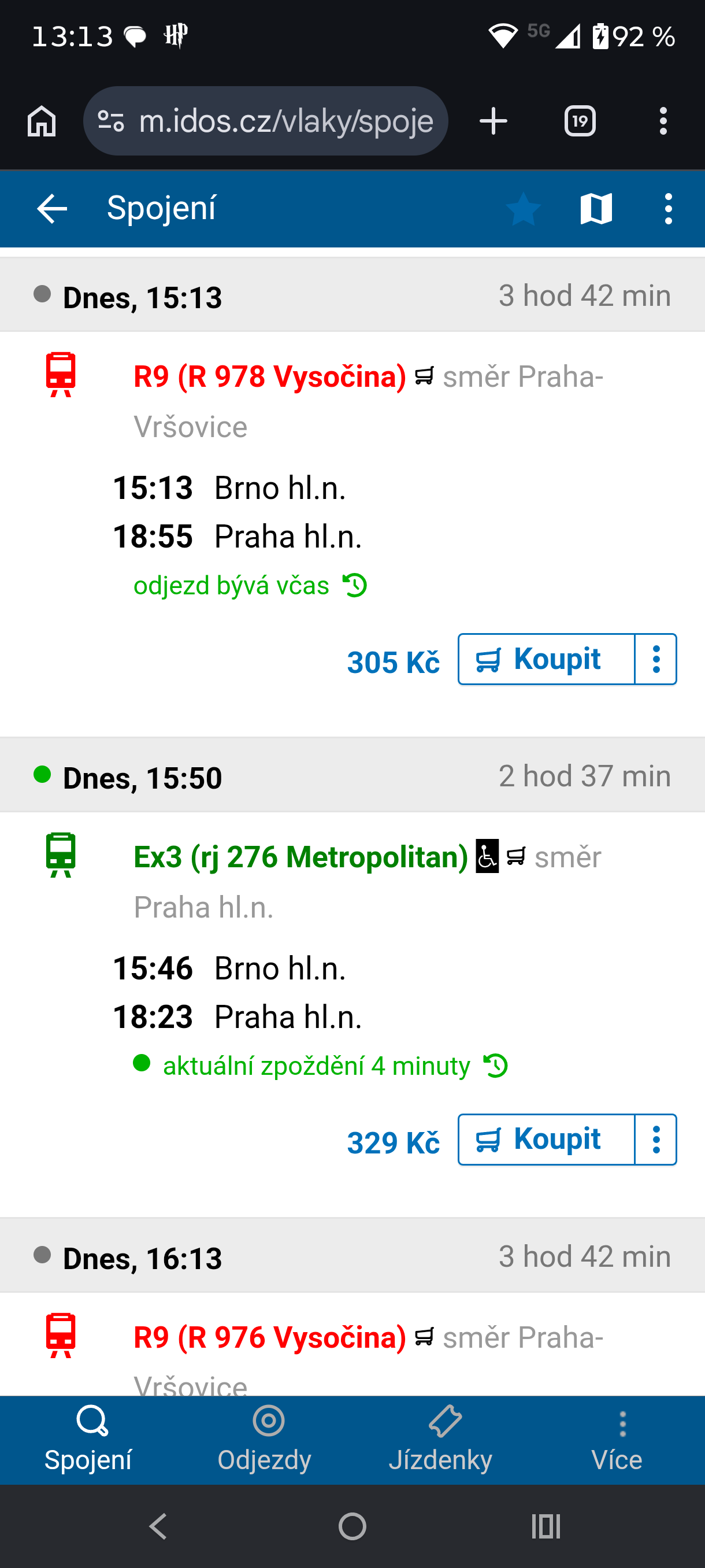 On the mobile websites IDOS.cz and CP.sk, we have improved the appearance of the button for purchasing a ticket and added an icon of three dots, under which at the moment only the option to search for a return connection is hidden, but in the future you will find other interesting options under it.